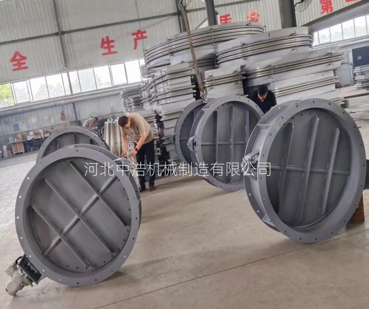 中浩機械對調(diào)節(jié)風門材料優(yōu)化采用符合密封材料極端條件采用特殊材料,符合密封材料 采用金屬和柔性材料,將金屬框架嵌入石墨、陶瓷纖維或高溫橡膠等,既可以耐溫又不失彈性,閥板表面通過噴涂鎢、碳化硅等耐磨防腐涂層,減少磨損提升泄漏率。在特殊工況條件下使用合金鋼和陶瓷復合材料,腐蝕性介質(zhì)選用聚四氟乙烯內(nèi)襯。結(jié)構(gòu)上提高通過多重密封結(jié)構(gòu)和動態(tài)補償機制,雙密封結(jié)構(gòu)采用主密封采用金屬硬密封承擔高溫高壓,通過柔性材料增強氣密性,,動態(tài)密封利用彈簧和氣動裝置自動補償熱膨脹磨損導致間隙。對密封面優(yōu)化設(shè)計,采用錐面或球面增強緊密型,閥座設(shè)計采用精度執(zhí)行器,便于調(diào)節(jié)時更貼合。制造與裝配上,數(shù)控機床切割閥板、閥座,誤差控制在0.05mm之內(nèi),減少初始泄露,密封面打磨鏡面級,降低摩擦阻力,鍍硬鉻涂層提升耐磨性。其次對工況適應(yīng)性改進,包括防顆??O(shè)計以及熱變形處理,筏板邊緣可增設(shè)清潔裝置,防止積塵,閥板設(shè)計采用密封面密封面硬度差異設(shè)計,一般閥板硬度高于閥座,減少顆粒磨損。熱變形補償,筏板采用分體結(jié)構(gòu),熱膨脹自由變形,高溫區(qū)區(qū)域設(shè)置散熱片或則支架,以降低或隔離局部溫度。后期定期維護核管理是關(guān)鍵,每個月對密封面磨損量檢測,一般大于0.5mm時要更換,利用激光儀定期校準閥板閥座位置,密封件設(shè)置可拆卸,損壞定期更換及時拆除節(jié)約時間和成本。例如,河北中浩在某電廠700℃煙氣系統(tǒng)采用碳鋼陶瓷涂層加上雙密封材質(zhì),泄漏率從1.5%降到1%,同時延長了使用壽命。